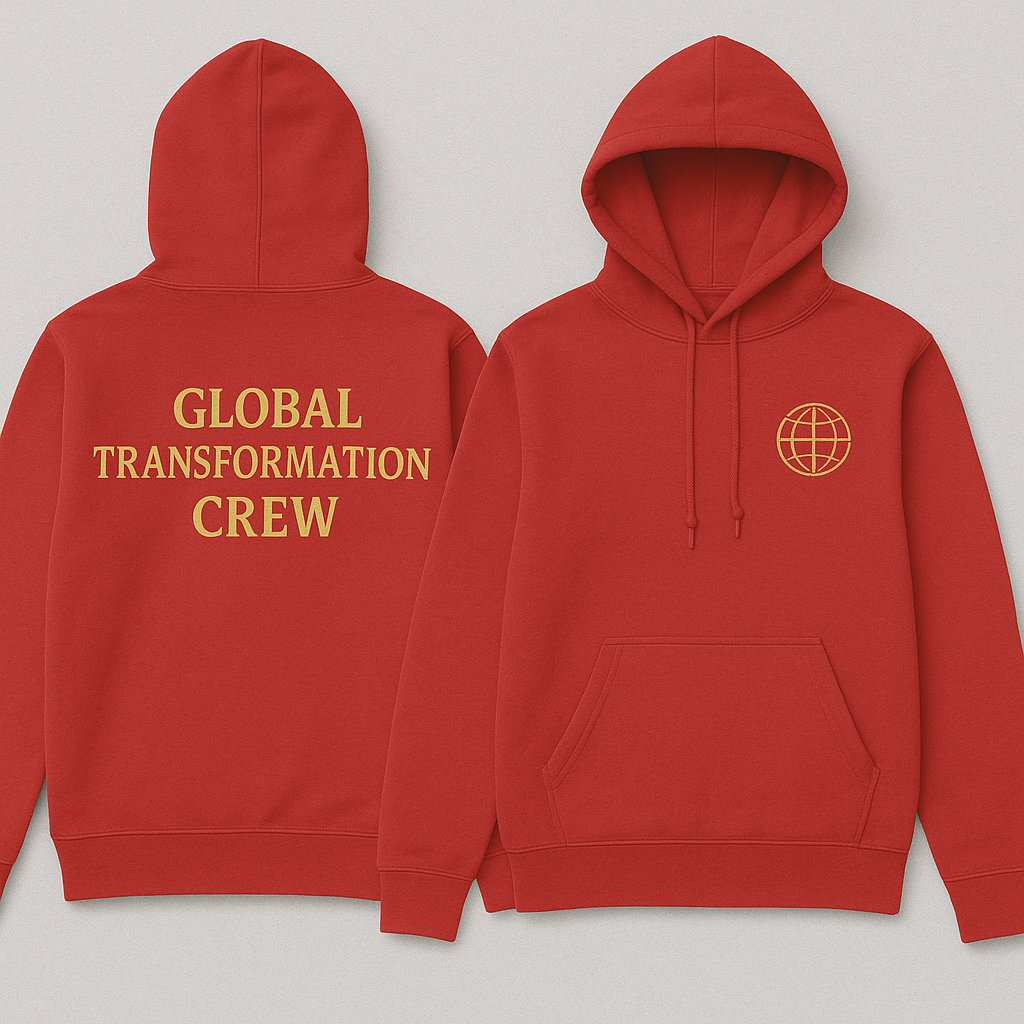 Show your commitment to global change with our Embroidered Hoodies, designed for comfort and style. Featuring “Global Transformation Crew” embroidered on the back and the sleek ministry logo on the chest, these hoodies are a perfect blend of fashion and purpose. Made with soft, high-quality fabric, they are ideal for casual wear or as part of your ministry outreach. Whether you’re part of the crew or just passionate about transformation, this hoodie will make a statement wherever you go.