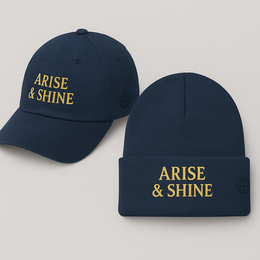 Arise & Shine Caps, Embroidered Beanies, Inspirational Headwear, Faith-Based Caps, Positive Change Apparel, Christian Caps, Motivational Beanies, Subtle Logo Hats, Unisex Caps, Empowerment Accessories